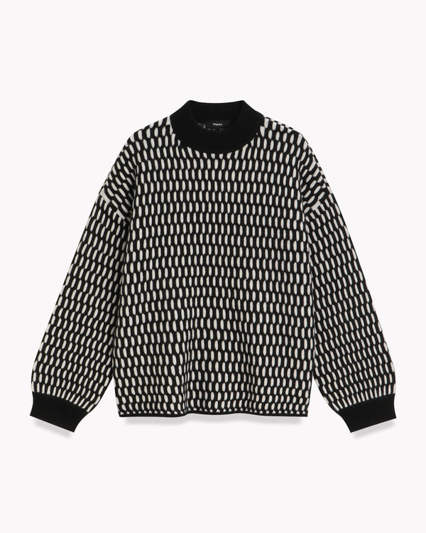 ライラックカラーのパンツに、グラフィカルな編み地のデザインニットをオン。色と柄を掛け合わせて、遊び心が光る着こなしに。旬のオーバーサイズのニットも、すっきりしたテーパードパンツだとバランスよく仕上がる。