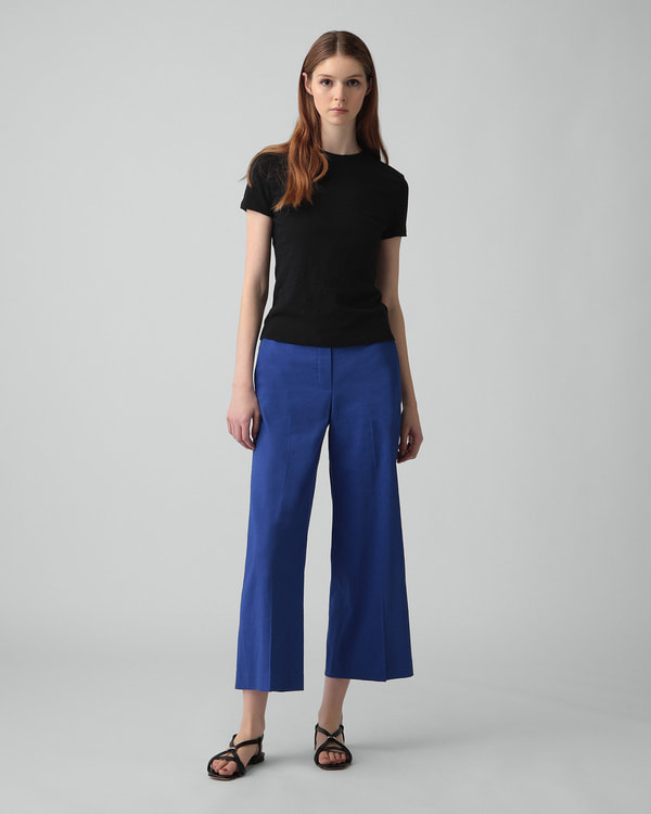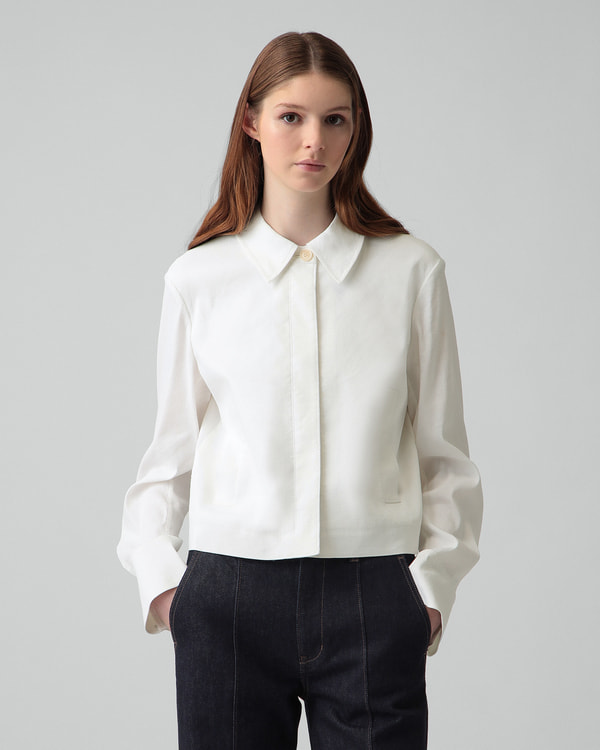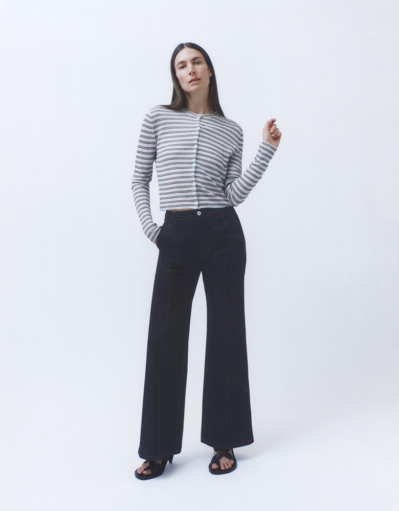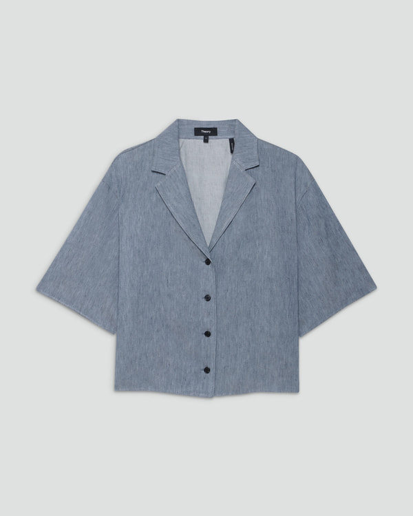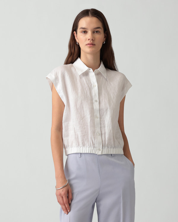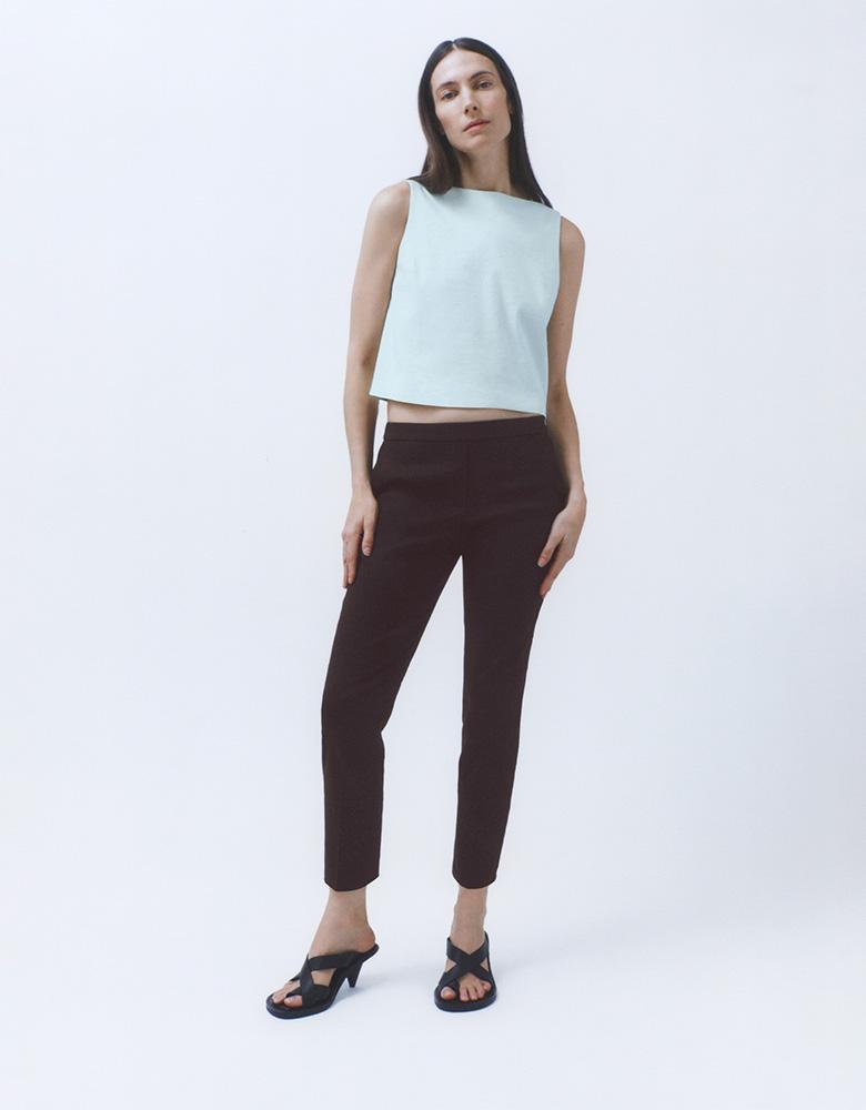 イタリアのプラートにあるマリーニ・アンド・チェッコーニ社で、25年間にわたりTheoryのために織り上げられてきた「Good Linen」は、3種類の繊維(フランス産の麻、廃綿を原料とするレーヨン、部分的にリサイクルされたポリウレタン)から作られています。優れた伸縮性を持ち、風通しが良く軽いこの生地は、ジャケットやパンツ、ドレスやトップスなど、幅広いアイテムに使用されます。