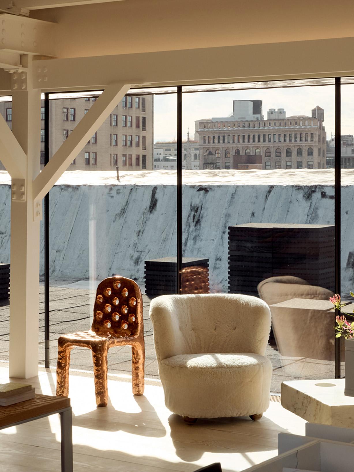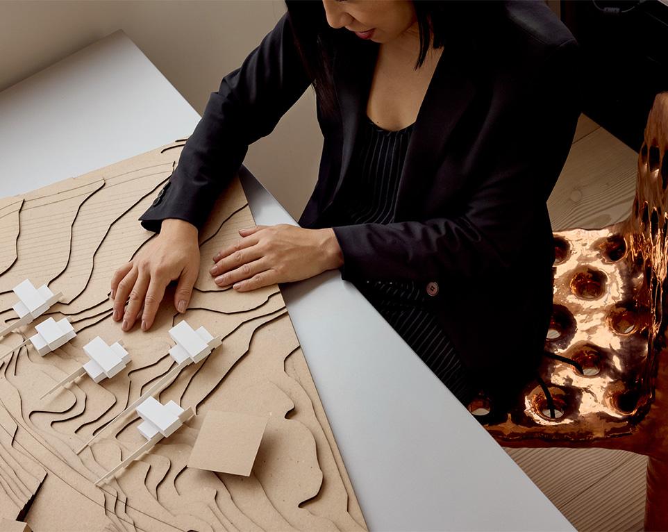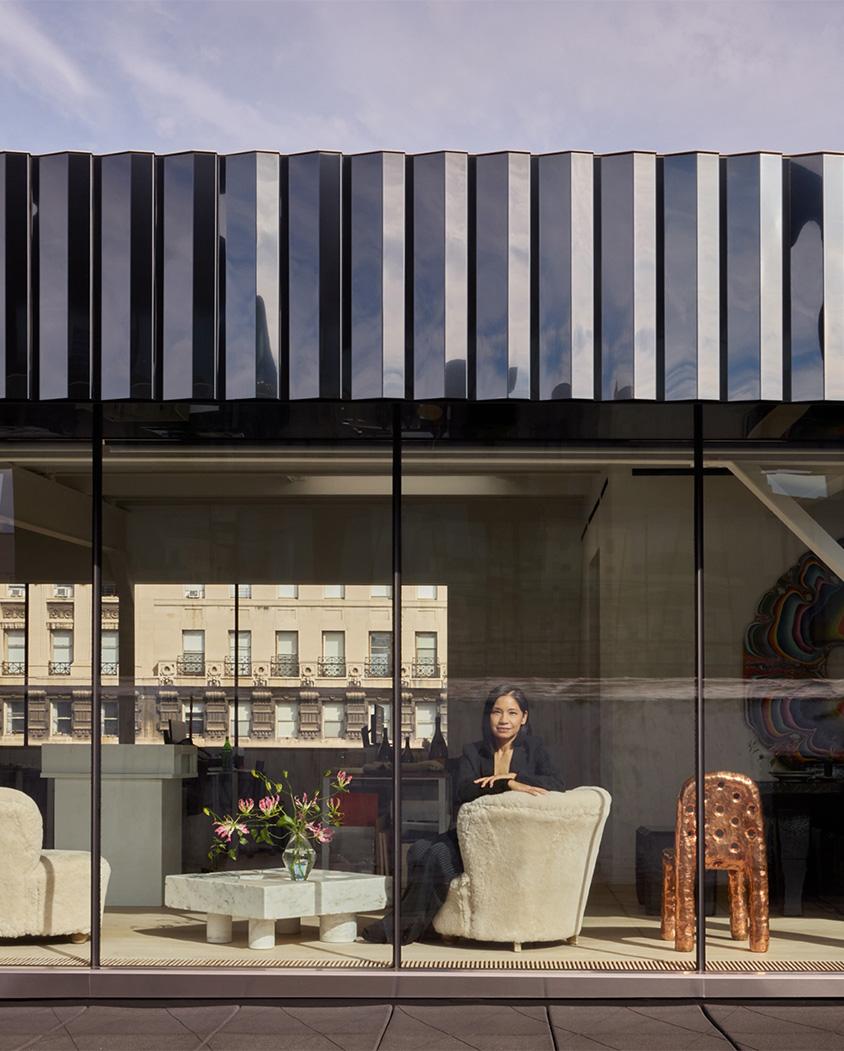 ステファニー・ゴトウにとって、仕事は単なる職業や実践の場にとどまらない。それは使命という言葉すら超え、世界を「見る」「感じる」「知覚する」「体験する」ための包括的なレンズである。2004年にニューヨークを拠点とする自身の設計事務所を設立して以来、彼女は時間をかけて着実に評価を積み重ねてきた。素材性、光と影、そして感覚を前景に据えた、幽玄でありながら厳密、細部まで考え抜かれたデザインによって、いまや引く手あまたの存在となっている。彼女の手にかかれば、建築は機能を超え、芸術の域へと昇華する。驚くべきことではないが、彼女が最も長く、深く関わってきたクライアントは、彫刻家アレクサンダー・カルダーの孫であり、カルダー財団理事長を務めるアレクサンダー・"サンディ"・ロワーだ。ニューヨークのカルダー財団プロジェクト・スペースをはじめ、ロサンゼルスのハウザー&ワース、東京のペース・ギャラリーでの展示など、世界各地の重要なプロジェクトが彼女に託されてきた。一方でゴトウは、ホスピタリティや住宅建築の分野でもその才能を発揮している。京都・新門前の〈ジャン=ジョルジュ〉、親しい友人でもあるシェフ、ダニエル・ブールーの自宅キッチン、さらには2020年、アッパー・イースト・サイドの〈ダニエル〉で展開された〈ブールー・シュル・メール〉のダイニング・コンセプトのデザインもその一例だ。ユニオン・スクエアに構える、自身のスタジオ兼ペントハウス----キッチンとダイニングを備えた、宝石箱のように親密で精緻な空間----から、ゴトウはアメリカと日本を往還するハイブリッドな視点、尽きることのないニューヨークへの愛、そしてシャンパーニュから高速車に至るまで、彼女を形