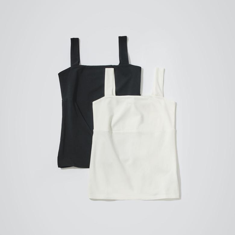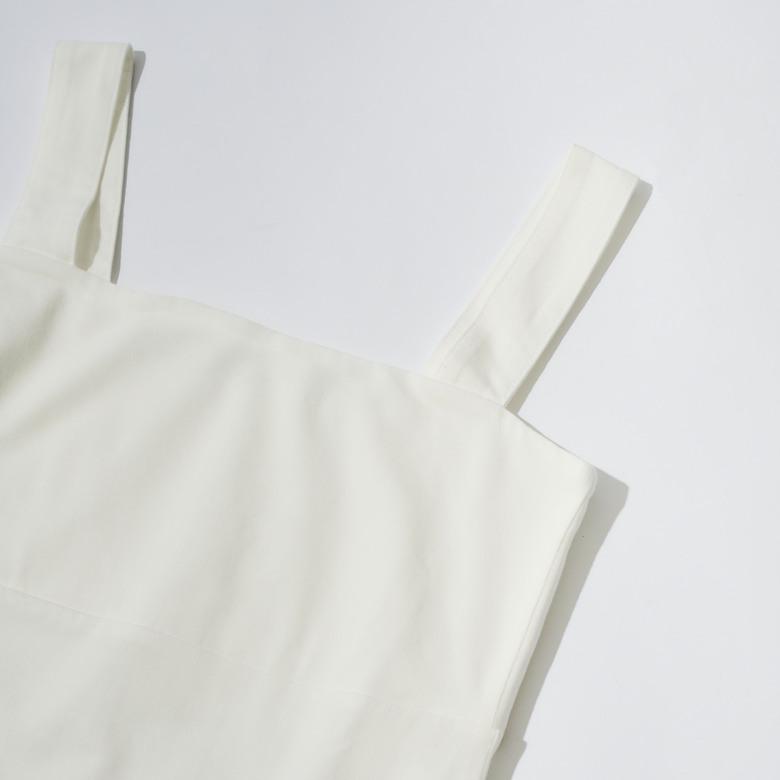 直線的な胸元のラインがシャープに印象付けるプルオーバータンクトップ。