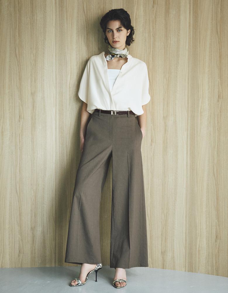 ボタンは少し開けてラフに。とろみ素材のパンツを合わせれば、きれいめリラクシーの完成。