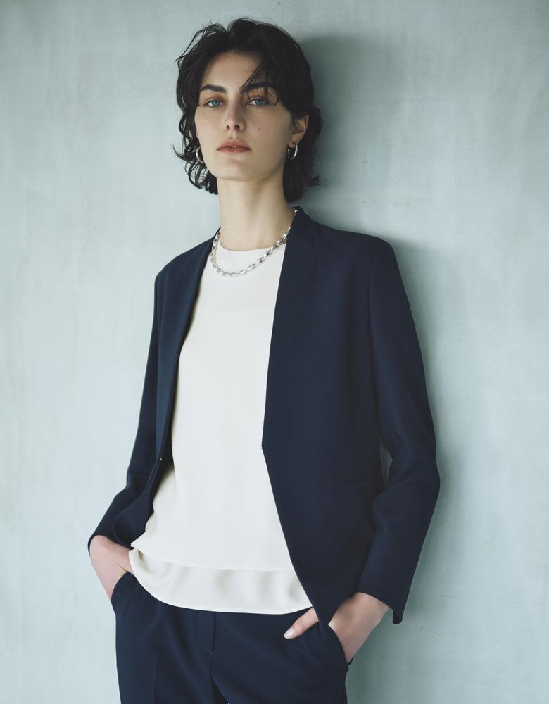 すっきりとした比翼仕立てでクリーンな印象ながら、女性らしい柔らかさを内包したモダンなシルエット。