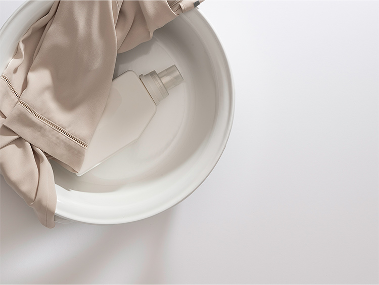 肌の滑りがよいバックサテン地で、表面は微光沢が美しく、クリーンでクラシカルな印象に。