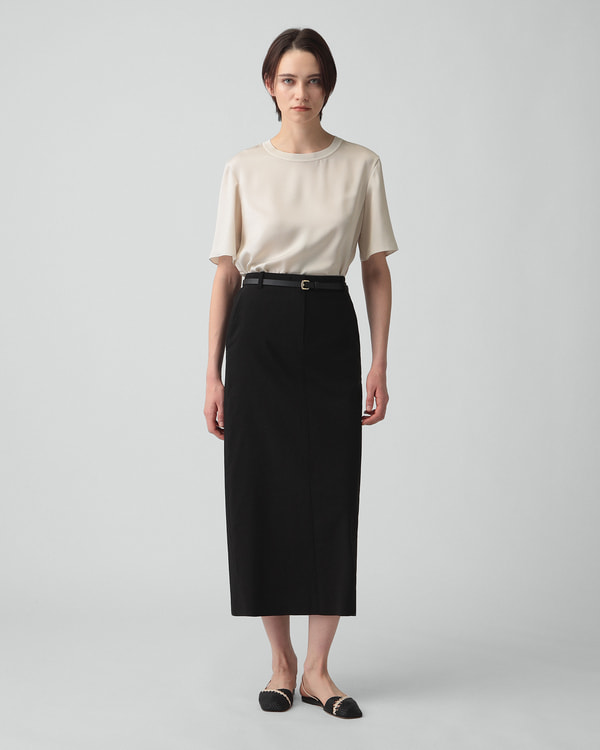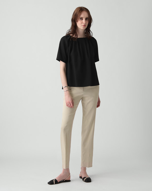 イタリア・プラートの老舗ファブリックメーカー「MARINI」社と共同開発したストレッチリネン素材。快適なストレッチ性と品格のあるドレープ、そしてリネン特有の艶感が特徴です。また夏にうれしい接触冷感性もあるセオリーリュクスオリジナルの生地。