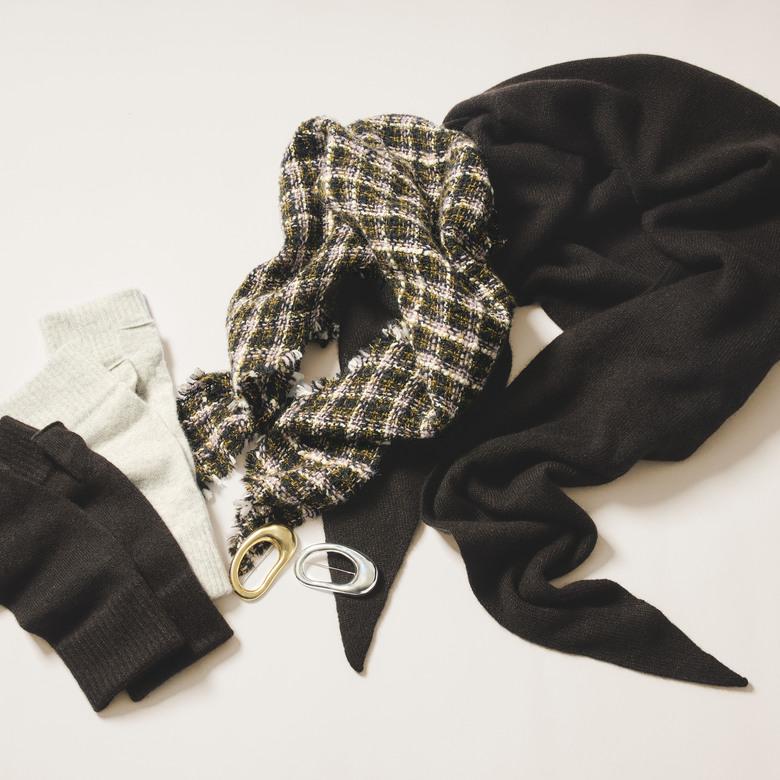 シャツ×バミューダパンツのカジュアルな組み合わせに、同色のカシミヤストールを重ねクラス感をアップ。立体感のある、大人カジュアルなワントーンコーデが完成。