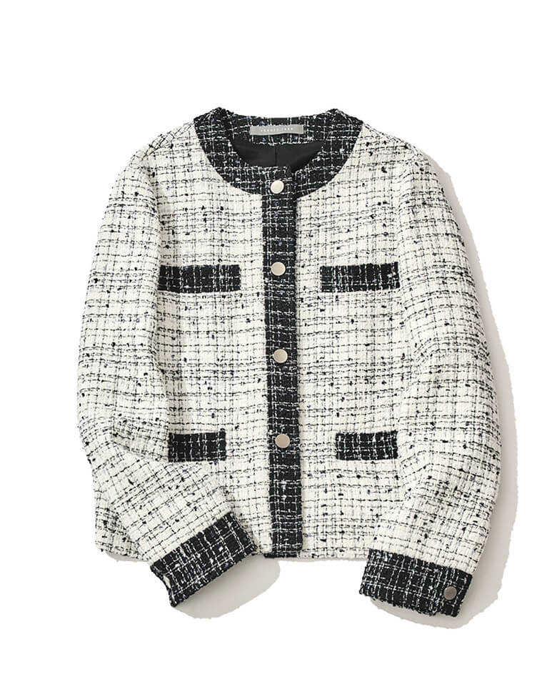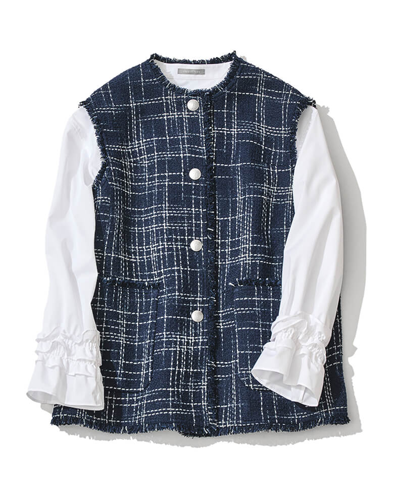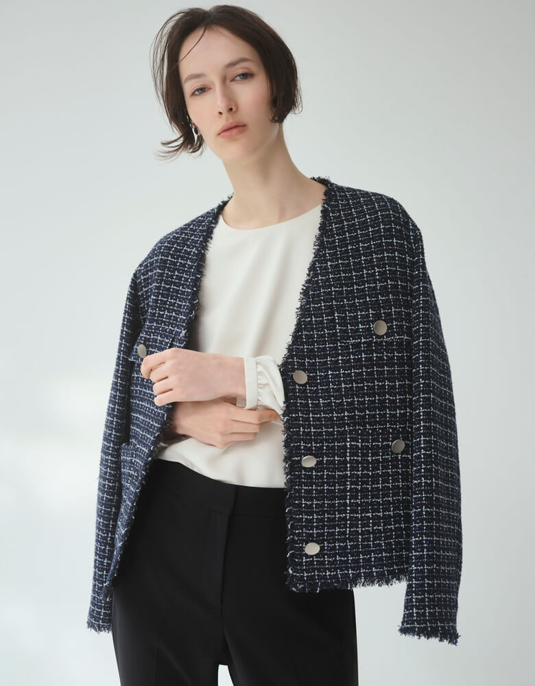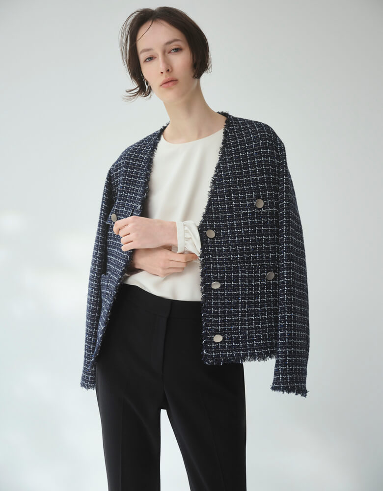 ツイードジャケット、エレガントなブラウス...