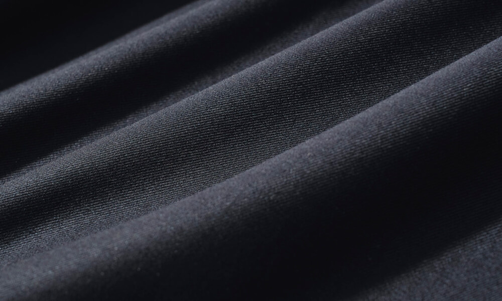 仕立て映えする素材に。ナチュラルなストレッチ性と軽い着心地に加え、UVカット、速乾性、