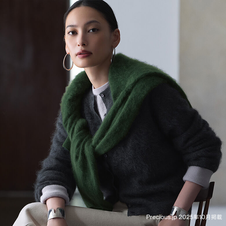 ふっくらとしたブークレヤーンを用いたニットブルゾンは、脱ぎ着しやすく保温性もあるため、ロングスパンで頼りになる存在に。アストラカンのようにカールした素材感にすることで、シンプルなスタイルに奥行きが生まれます。ミニマルなジップ使いや、ライン入りのリブ袖など、細部にこだわりが凝縮。